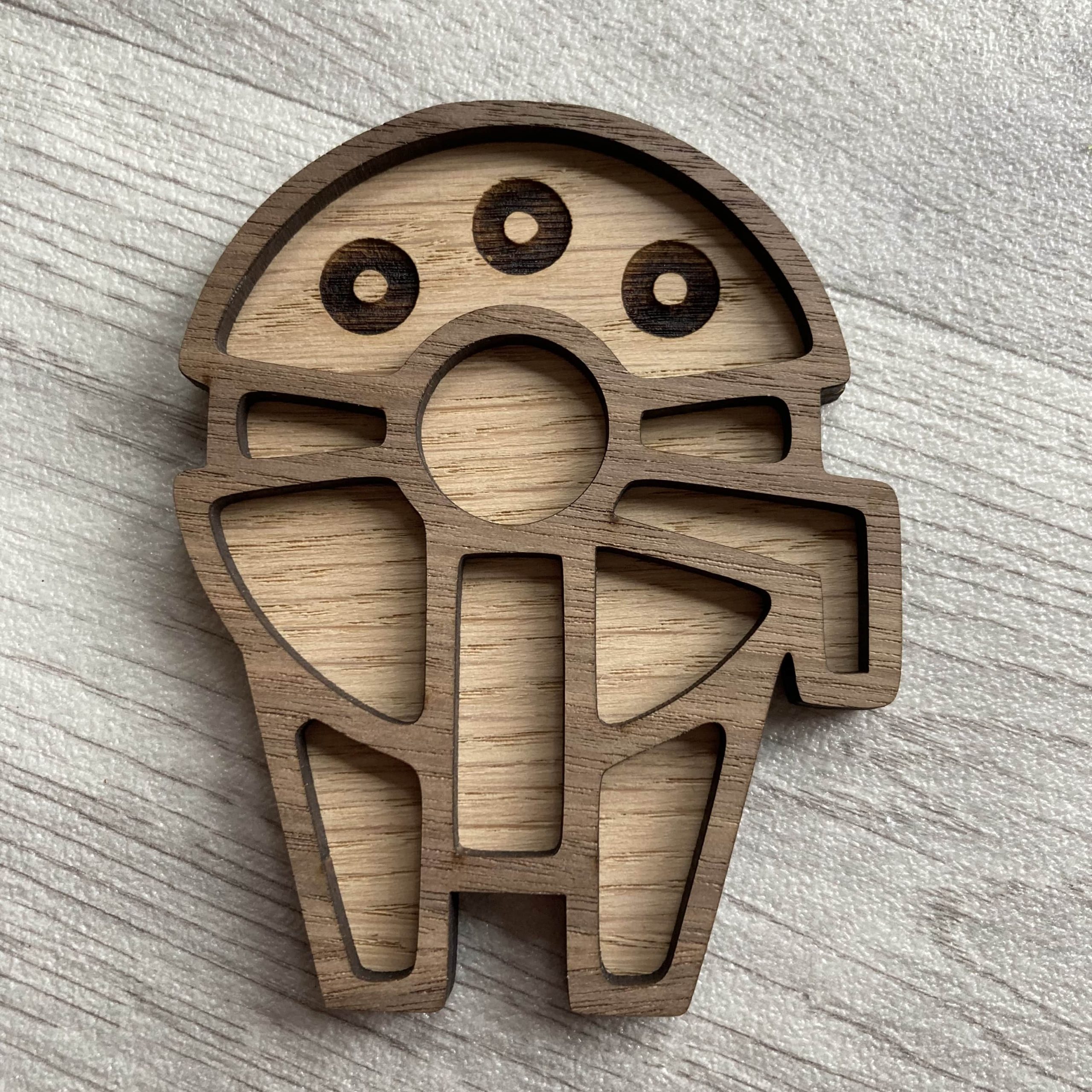 An ideal gift for any occasion and a must-have for those Star Wars fans in your life! This contemporary oak and walnut layered Star Wars Millennium Falcon coaster would fit perfectly into any home office, living room or kitchen.