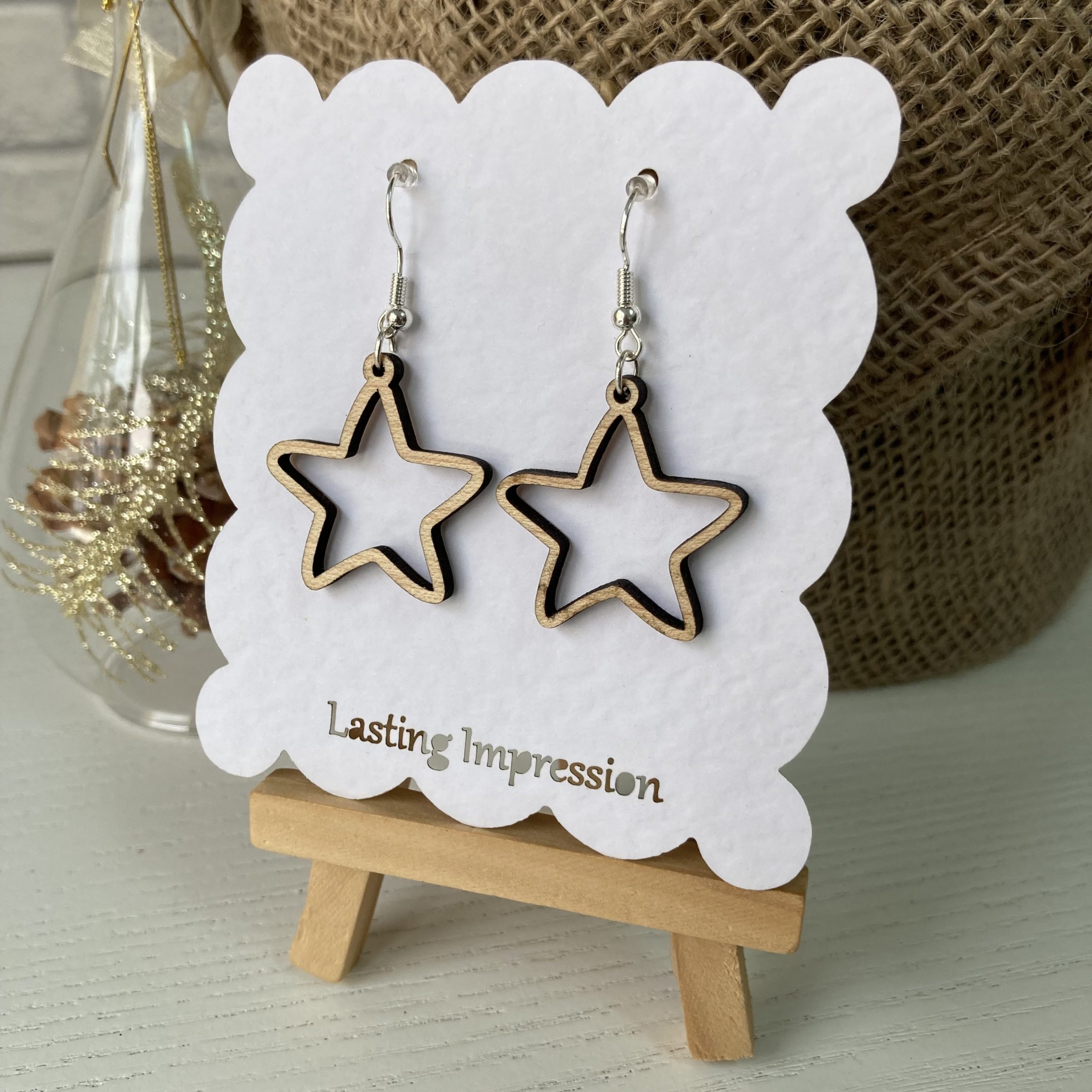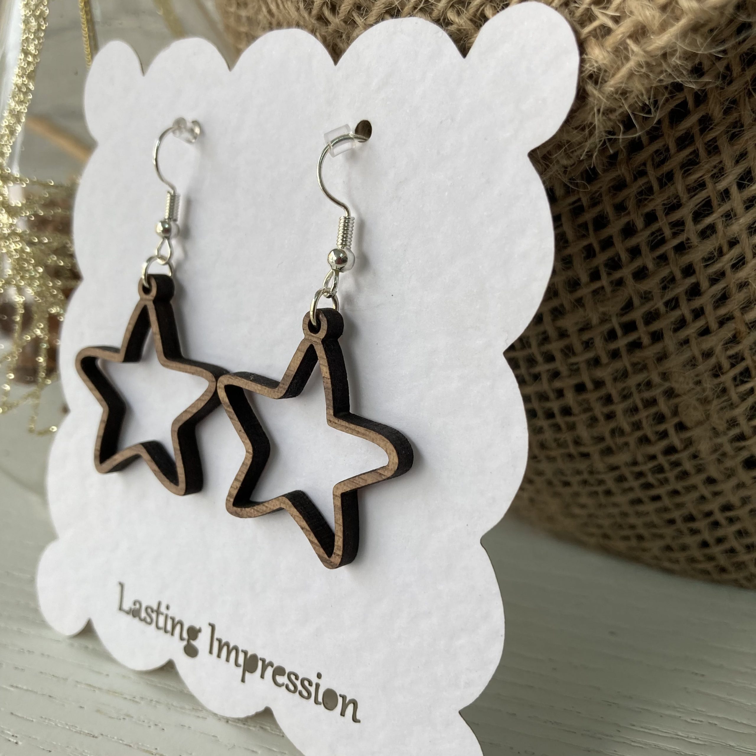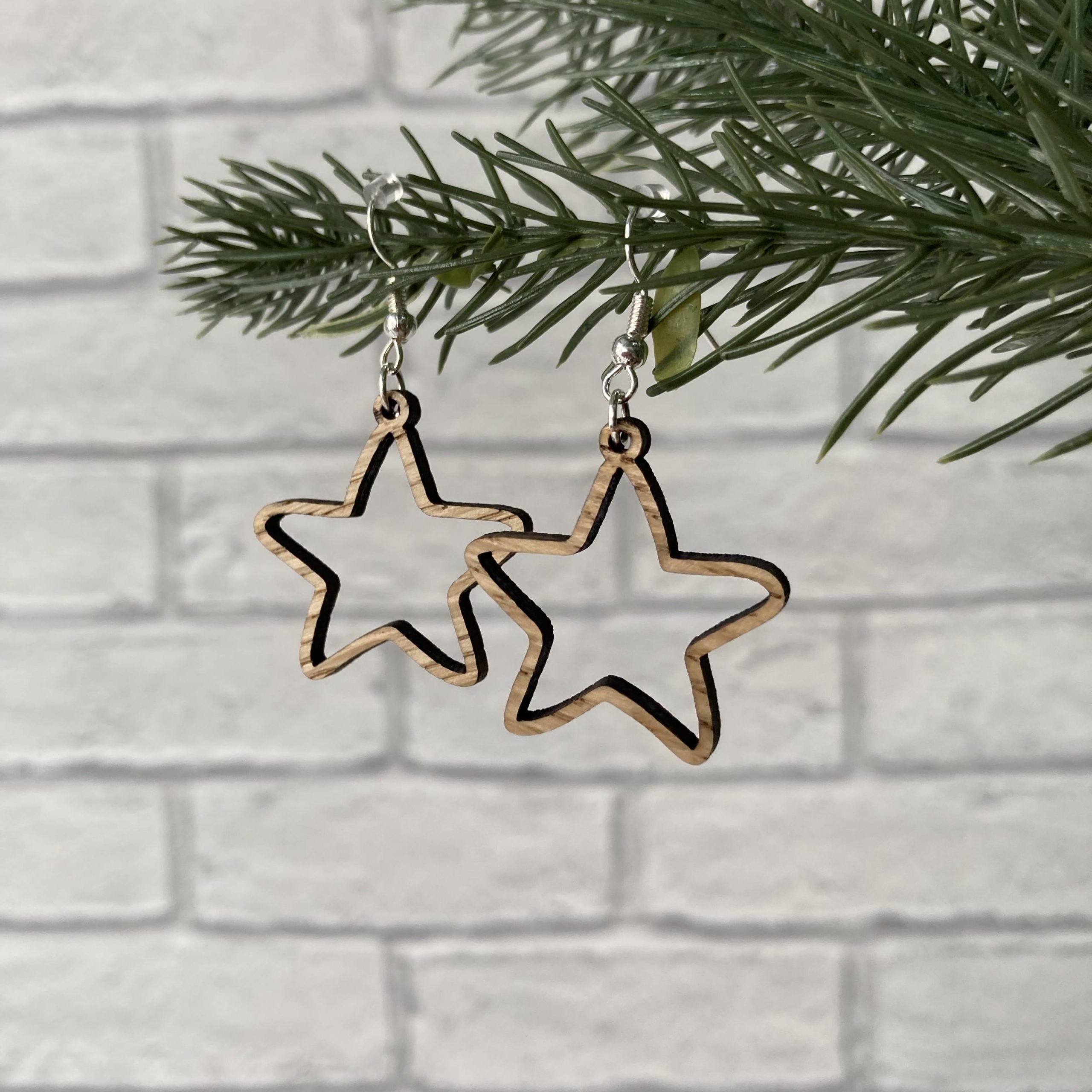 Wooden Star Earrings
